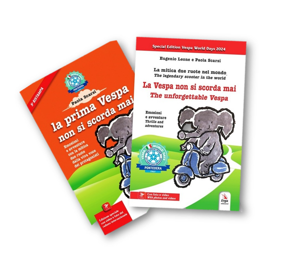 Che cosa rende il marchio Vespa famoso nel mondo? Perché ci sono musei sulla Vespa in gran parte dei Continenti? Che ruolo hanno avuto gli italiani all’estero nella diffusione della mitica Vespa e oggi i loro figli, che hanno creato centinaia di club di vespisti in tutto il mondo? Paola Scarsi ha intervistato tanti Vespisti appassionati sparsi nel mondo che raccontano il loro amore per la Vespa insieme a piccole e grandi avventure, come la Parigi-Dakar. I due volumi polisensoriali sono corredati dai QR code della Appa Vesepia, che consentono di accedere a foto e video dei protagonisti.