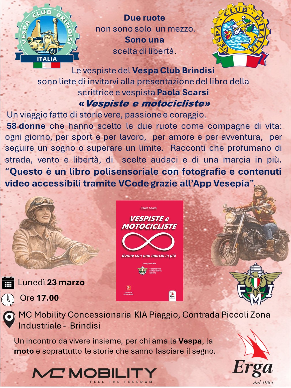 presso il Gruppo Vespa Libera, il Vespa Club Taranto e il Vespa Club Brindisi.